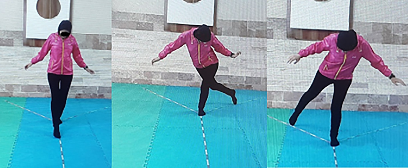 The current study assessed static balance using the balance errors test. This test involved six different positions, including three standing positions (standing on both legs, standing with one leg in front and the other behind, and standing on one leg), performed on both soft and hard surfaces. In each position, the subjects closed their eyes and placed their hands on their waists. Each position was held for 20 seconds, and the number of errors made during these six positions was calculated to determine their score. Errors included any instance where the subjects separated their hands from their waists, opened their eyes, or experienced any form of balance disturbance. Before the formal testing, subjects were allowed to practice the test three times to become familiar with the assessment procedure [ 27 ].