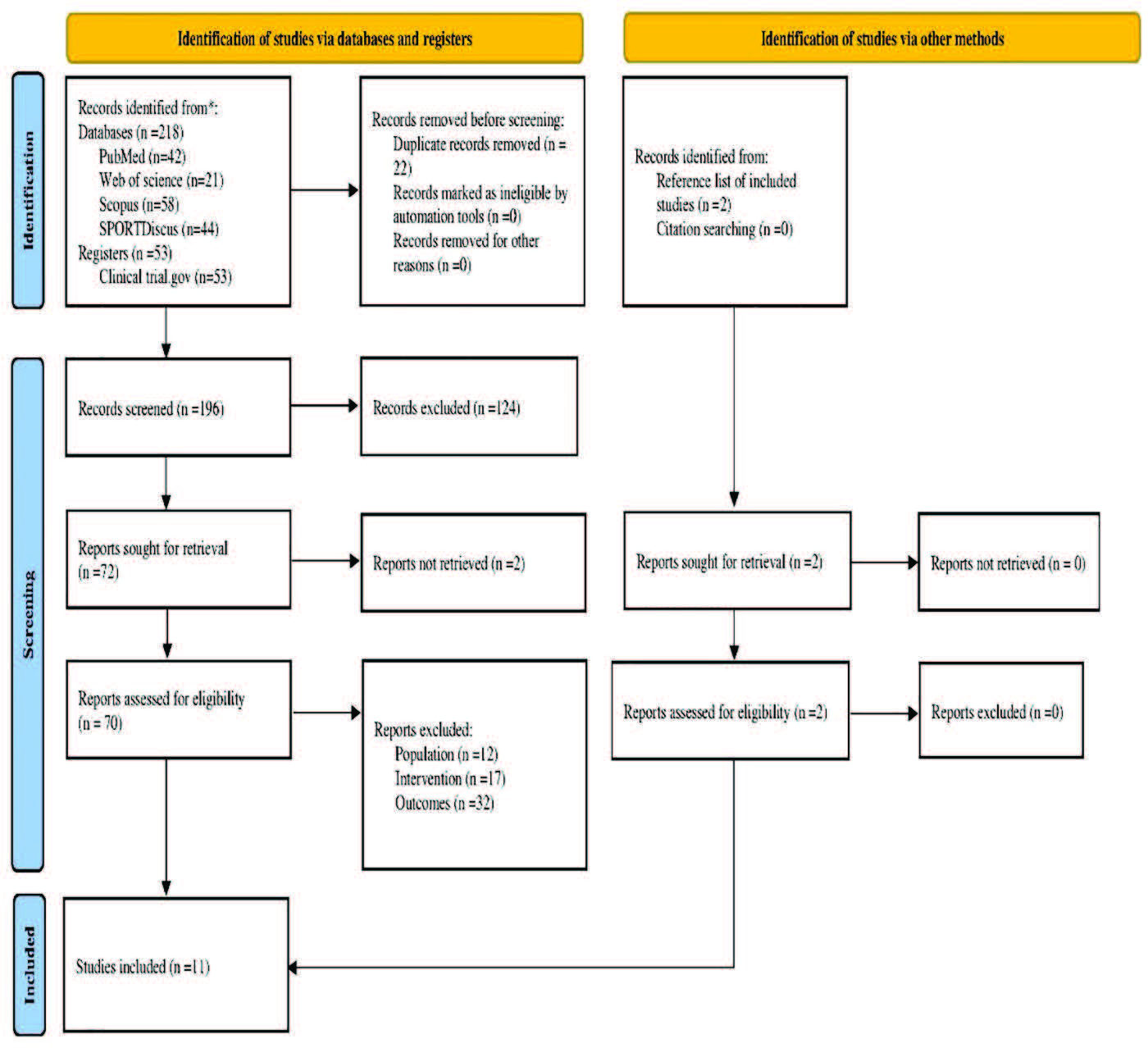 In the initial search, 218 records were identified, and two additional records were found from the reference lists of included studies. The PRISMA flowchart process led to the inclusion of 11 articles in this review. From the initial search to the final decision, the entire process can be visualized through the PRISMA diagram in Figure 1.