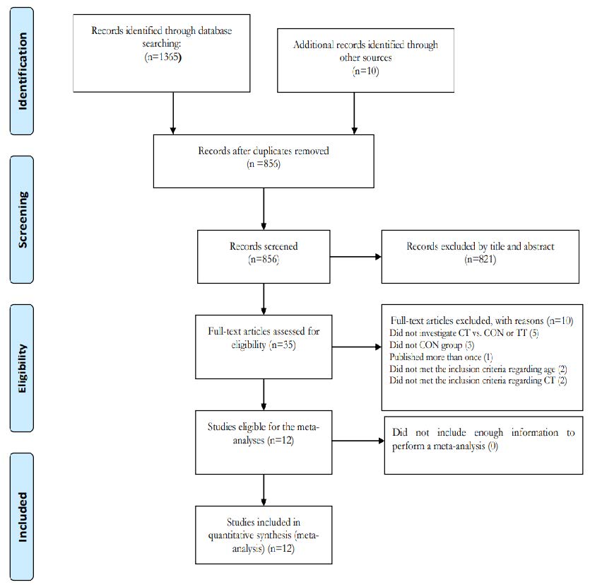 Figure 1. Flow Diagram of Systematic Literature Search. CN, Control; TT, Traditional Training; CT, Combined Training.